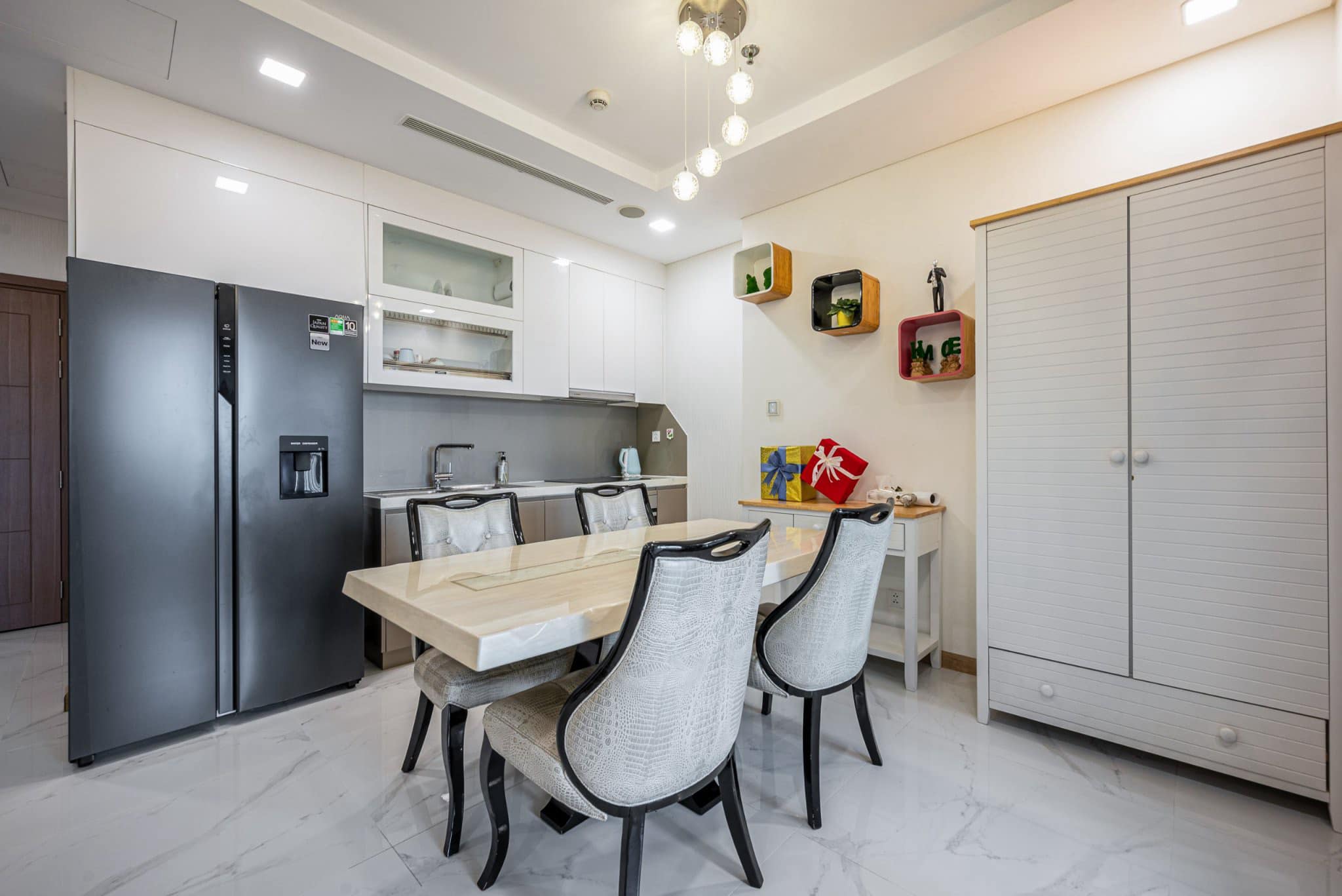 - Thiết kế hiện đại ✅: Căn hộ 2 phòng ngủ (70-80m²), 2 nhà vệ sinh, nội thất cao cấp: giường king-size, sofa, bếp từ, TV thông minh, máy giặt, Wi-Fi tốc độ cao, kính Low-E chống nhiệt. Xem thêm tại danh sách căn hộ.