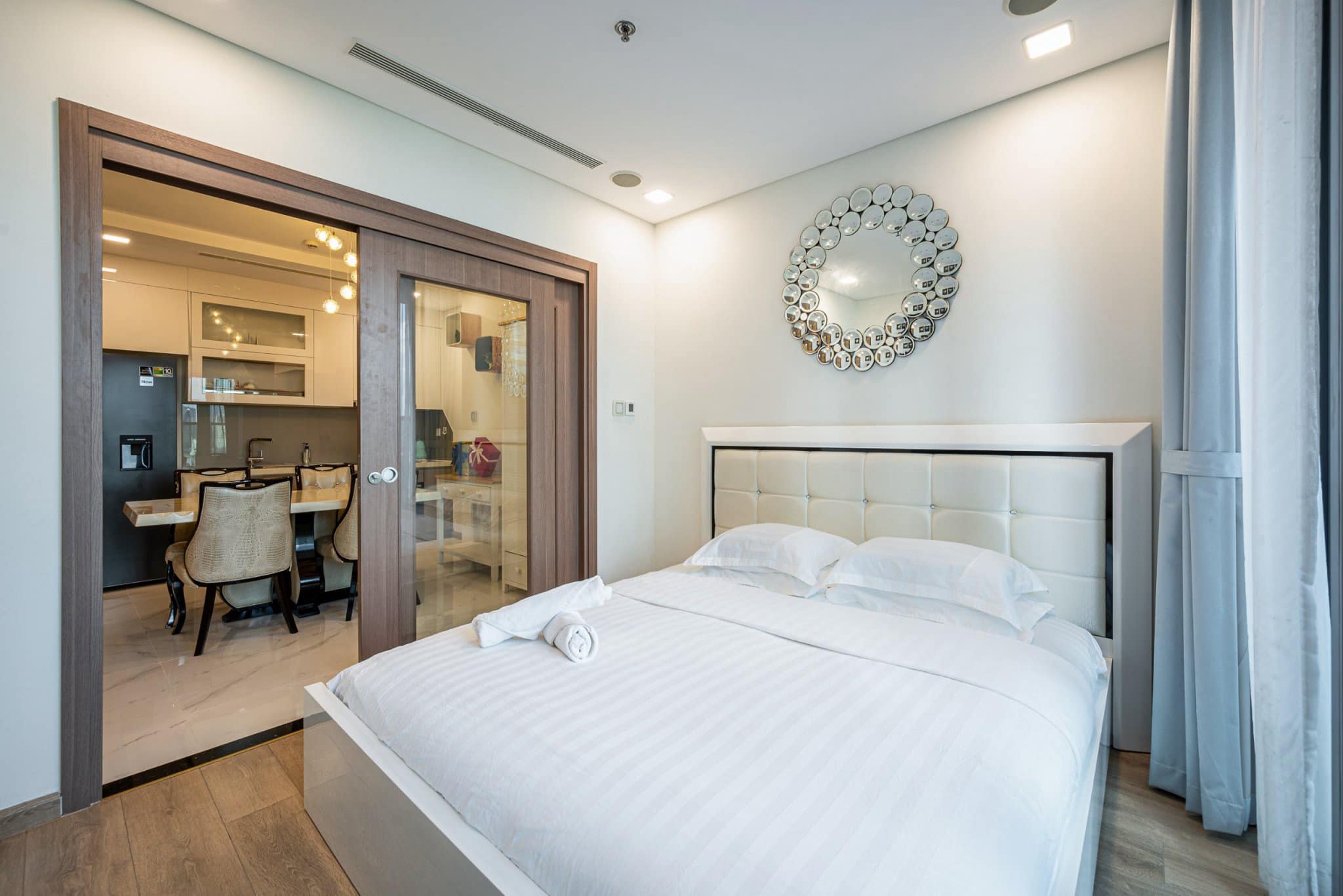 - Linh hoạt theo ngày: Dịch vụ cho thuê căn hộ 2 phòng ngủ ngắn hạn Landmark 81 phù hợp cho du lịch, công tác, hoặc gia đình 4-6 người.