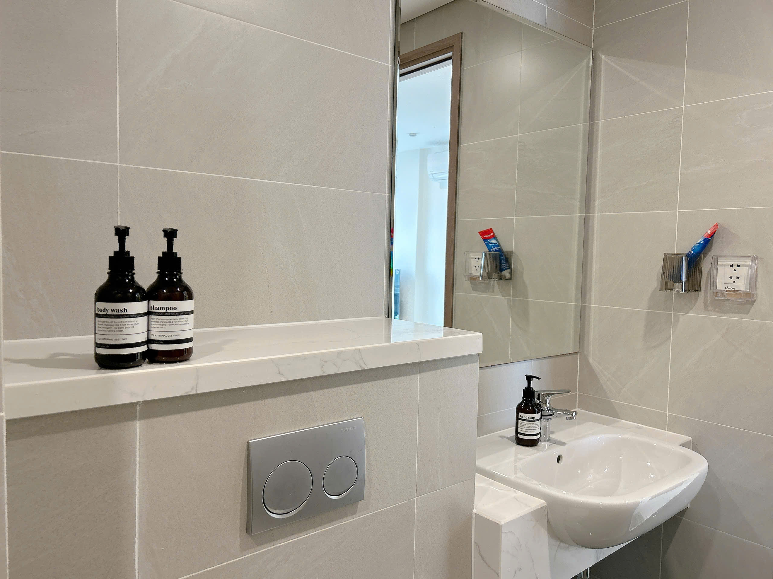 - Thiết kế hiện đại ✅: Căn hộ 1 phòng ngủ (45-55m²), 1 nhà vệ sinh, trang bị nội thất cao cấp: giường king-size, sofa, bếp từ, TV thông minh 4K, máy giặt, Wi-Fi tốc độ cao, kính Low-E chống nhiệt. Xem thêm căn hộ tại danh sách căn hộ.