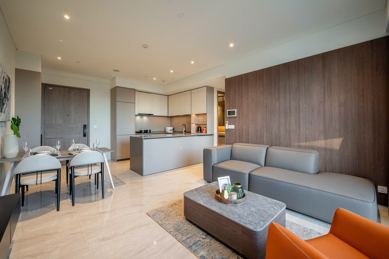 🛋️ Thiết kế hiện đại, đầy đủ tiện nghi: Căn hộ 2 phòng ngủ, 2 nhà vệ sinh với diện tích 69–94m² (phổ biến 70–80m²), trang bị nội thất cao cấp: giường, sofa, tủ âm tường, bếp từ, máy lạnh, TV thông minh, máy giặt, và hệ thống cửa thông minh (nhận diện khuôn mặt/vân tay), sẵn sàng cho kỳ nghỉ ngắn ngày.