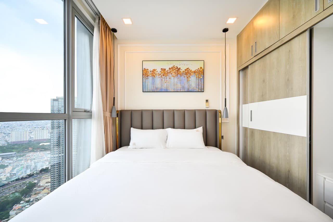 Cho thuê căn hộ 2 phòng ngủ ngắn hạn Vinhomes Central Park mang đến trải nghiệm sống tiện nghi, hiện đại. Căn hộ được vệ sinh kỹ lưỡng trước và sau mỗi lần thuê, đảm bảo không gian sạch sẽ, an toàn. Nội thất cao cấp, hỗ trợ đặt phòng 24/7 qua trang liên hệ.