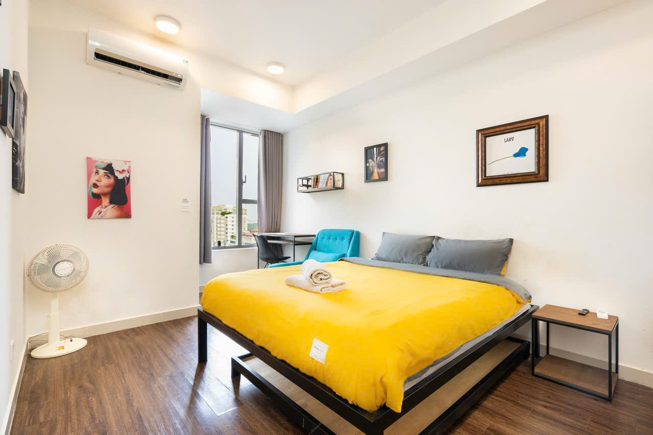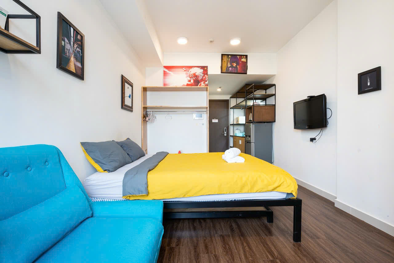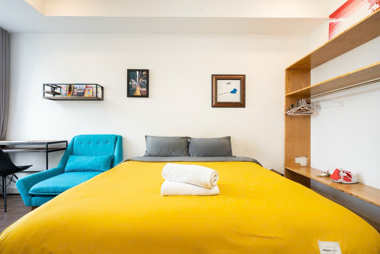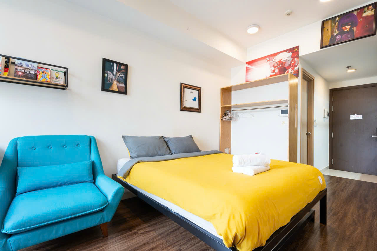 Thiết kế hiện đại ✅: Căn hộ studio (30-40m²), 1 nhà vệ sinh, trang bị nội thất cao cấp: giường queen-size, sofa, bếp từ, TV thông minh 4K, máy giặt, Wi-Fi tốc độ cao, kính Low-E chống nhiệt. Xem thêm căn hộ tại danh sách căn hộ.