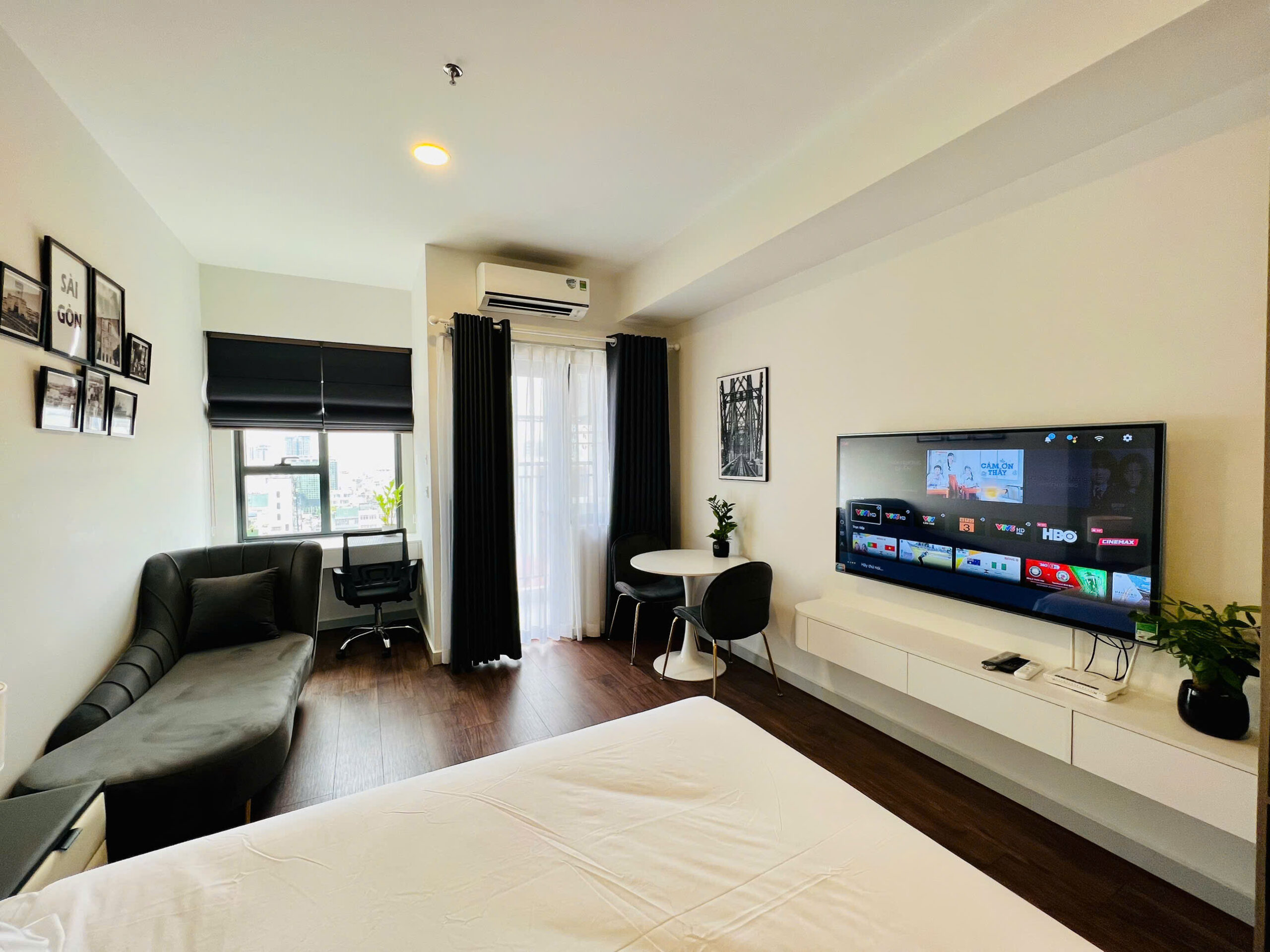 - View thành phố sôi động 🌟: Cửa sổ lớn, logia thoáng đãng, view Quận 1 lung linh hoặc phố Cô Giang nhộn nhịp, mang lại không gian thư giãn, lý tưởng cho nghỉ dưỡng hoặc làm việc từ xa.