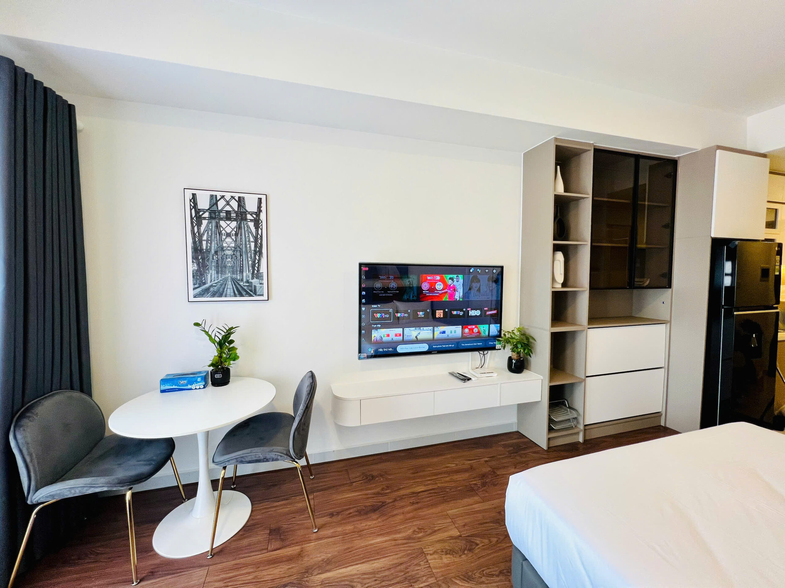 - Thiết kế hiện đại ✅: Căn hộ studio (30-40m²), 1 nhà vệ sinh, trang bị nội thất cao cấp: giường queen-size, sofa, bếp từ, TV thông minh 4K, máy giặt, Wi-Fi tốc độ cao, kính Low-E chống nhiệt. Xem thêm căn hộ tại danh sách căn hộ.